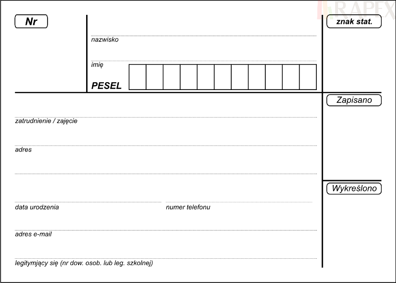 Wymiary kart zapisu 7,5 cm x 10,5 cm.